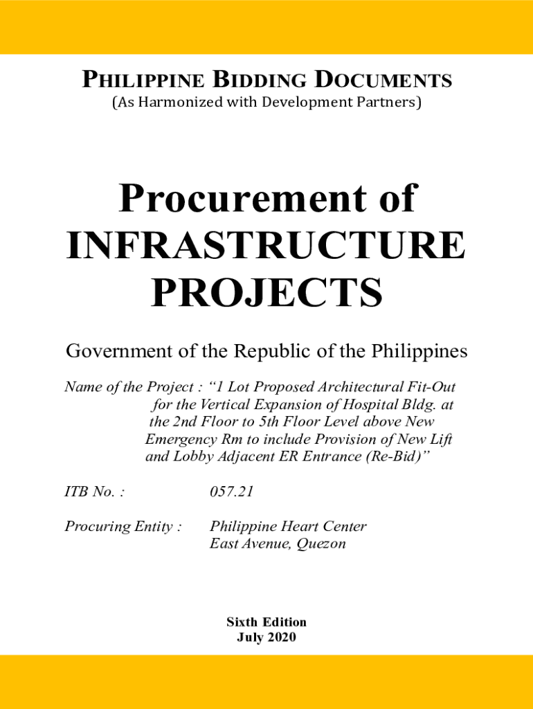 PHILIPPINE BIDDING DOCUMENTS (As Harmonized with Development Partners)Procurement of INFRASTRUCTURE PROJECTS Government of the Republic of the Philippines Name of the Project : 1 Lot Proposed Architectural