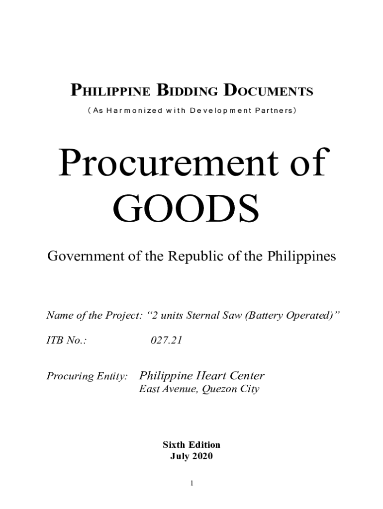 PHILIPPINE BIDDING DOCUMENTS (As H an r m o n i zed w i t h D e v e l o p m e n t Pa r t né rs)Procurement of GOODS Government of the Republic of the PhilippinesName of the Project: 2 units Sternal
