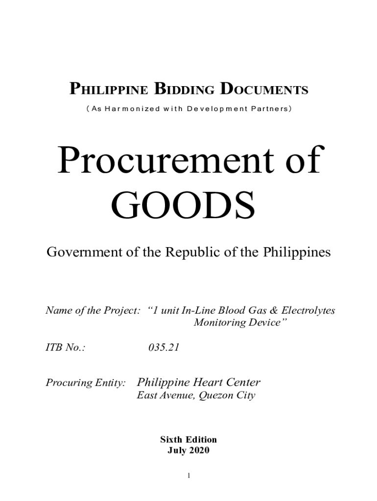 PHILIPPINE BIDDING DOCUMENTS (As H an r m o n i zed w i t h D e v e l o p m e n t Pa r t né rs)Procurement of GOODS Government of the Republic of the PhilippinesName of the Project: 1 unit Inline