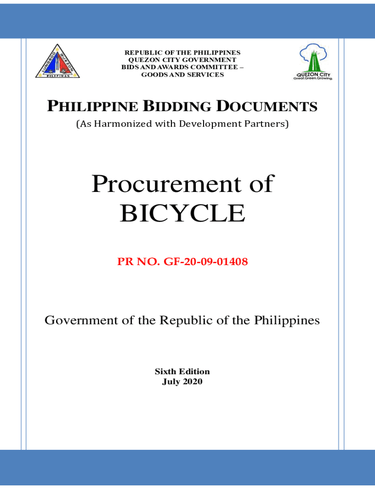 REPUBLIC OF THE PHILIPPINES QUEZON CITY GOVERNMENT BIDS AND AWARDS COMMITTEE GOODS AND SERVICESPHILIPPINE BIDDING DOCUMENTS (As Harmonized with Development Partners)Procurement of BICYCLE PR NO. GF200901408Government