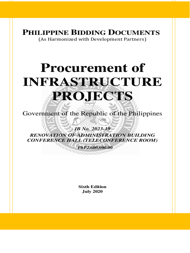 PHILIPPINE BIDDING DOCUMENTS (As Harmonized with Development Partners)Procurement of INFRASTRUCTURE PROJECTS Government of the Republic of the Philippines IB No. 202319 RENOVATION OF ADMINISTRATION