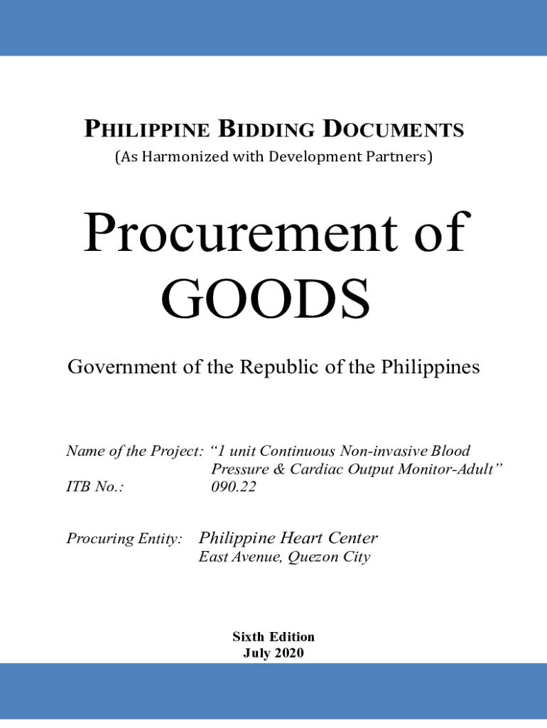 PHILIPPINE BIDDING DOCUMENTS (As Harmonized with Development Partners)Procurement of GOODS Government of the Republic of the PhilippinesName of the Project: 1 unit Continuous Noninvasive Blood Pressure