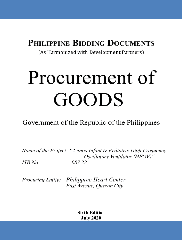 PHILIPPINE BIDDING DOCUMENTS (As Harmonized with Development Partners)Procurement of GOODS Government of the Republic of the PhilippinesName of the Project: 2 units Infant & Pediatric High Frequency