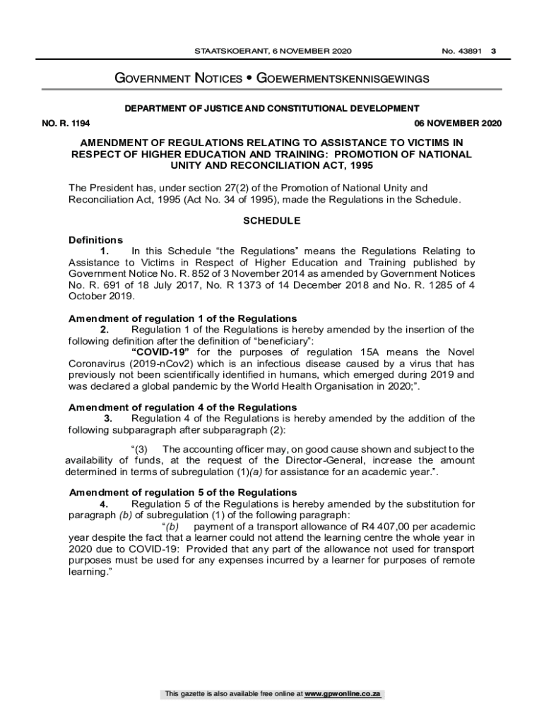 No. 43891 3STAATSKOERANT, 6 NOVEMBER 2020Government Notices Goewermentskennisgewings GOVERNMENT NOTICE DEPARTMENT OF JUSTICE AND CONSTITUTIONAL DEVELOPMENT Justice and Constitutional Development,