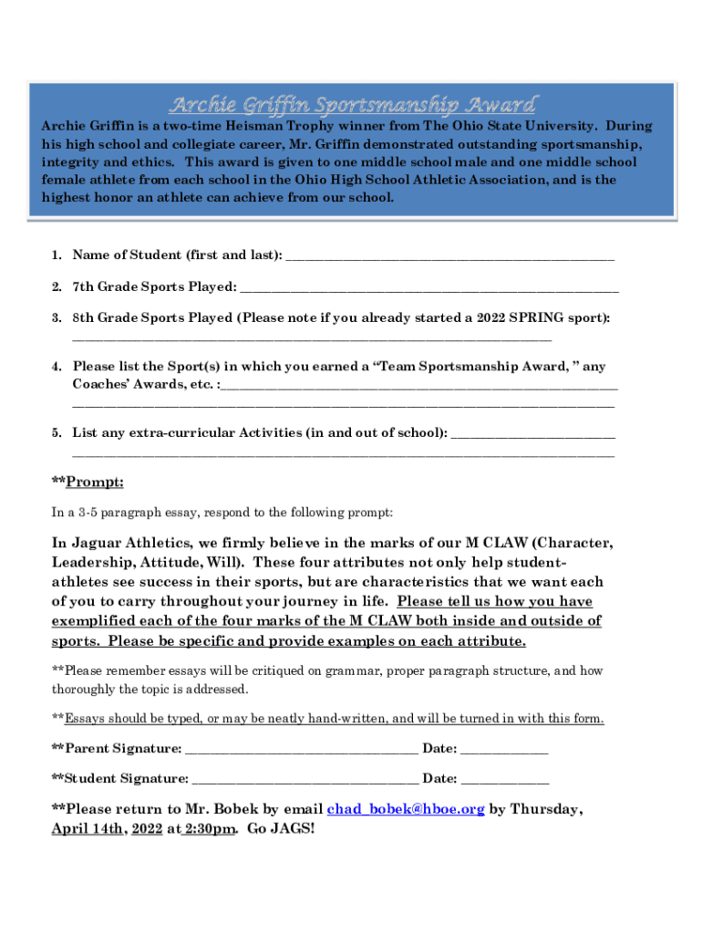 Fill out your archie griffin - ohio online with pdfFiller!