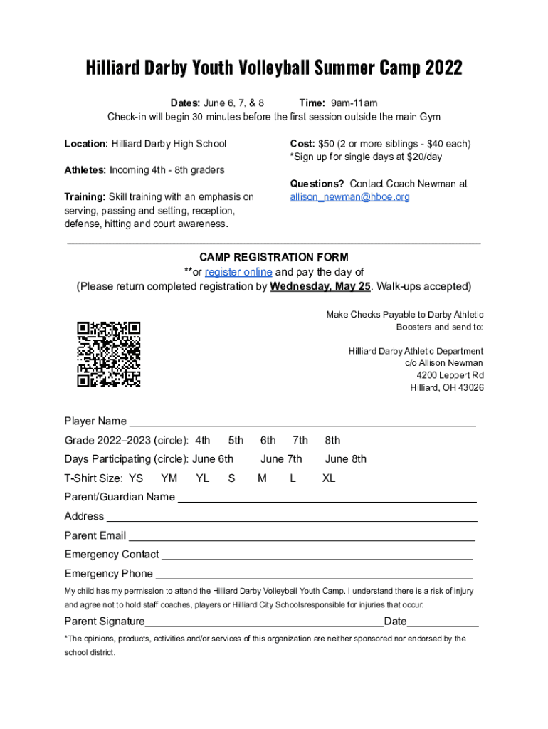 Billiard Darby Youth Volleyball Summer Camp 2022 Dates: June 6, 7, & 8 Time: 9am11am Checking will begin 30 minutes before the first session outside the main Gym Location: Billiard Darby High Schools: