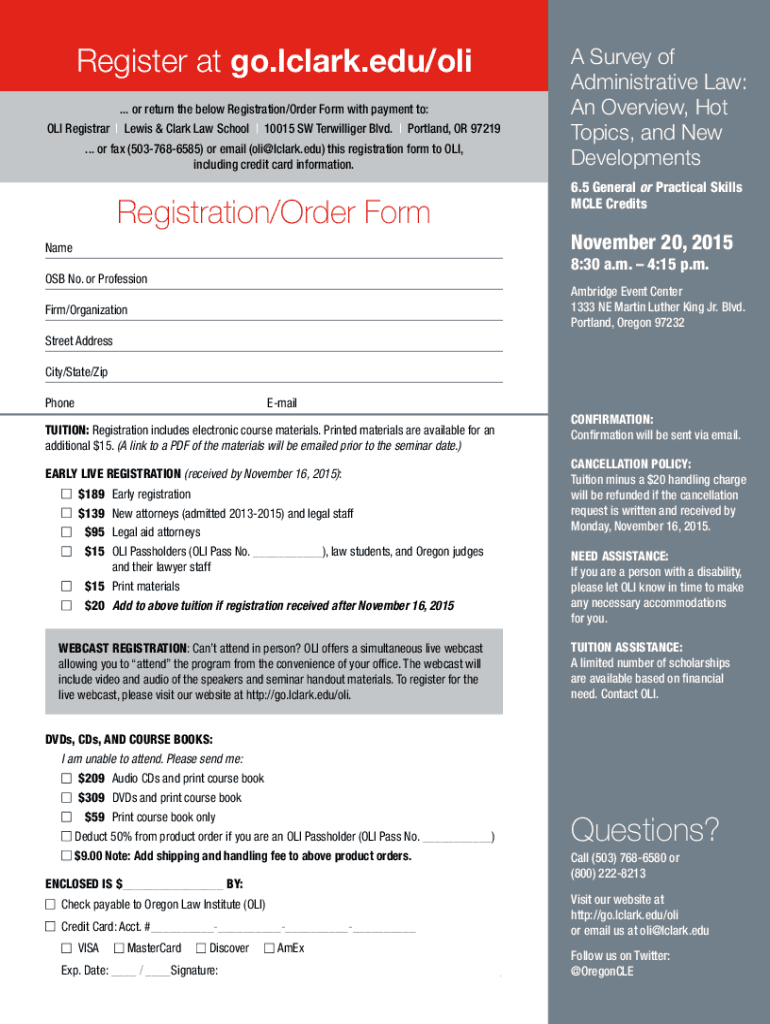 Oregon Law Institute of can be filled out online through the organization's website or by mail using the paper form provided by the institute.