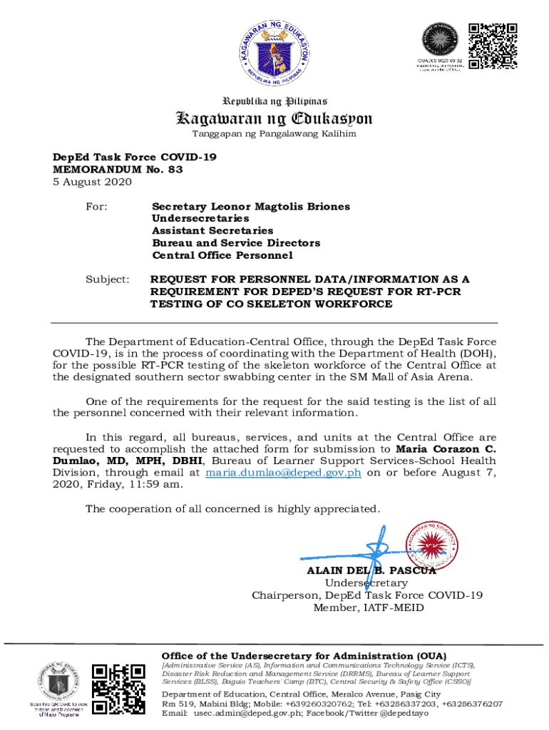 Tangshan NG Pangalawang KalihimDepEd Task Force COVID-19