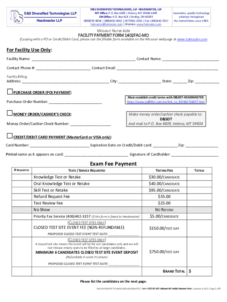 Form 1402fac mo can be filled out electronically using the IRS's e-filing system or by mailing a paper copy to the IRS.