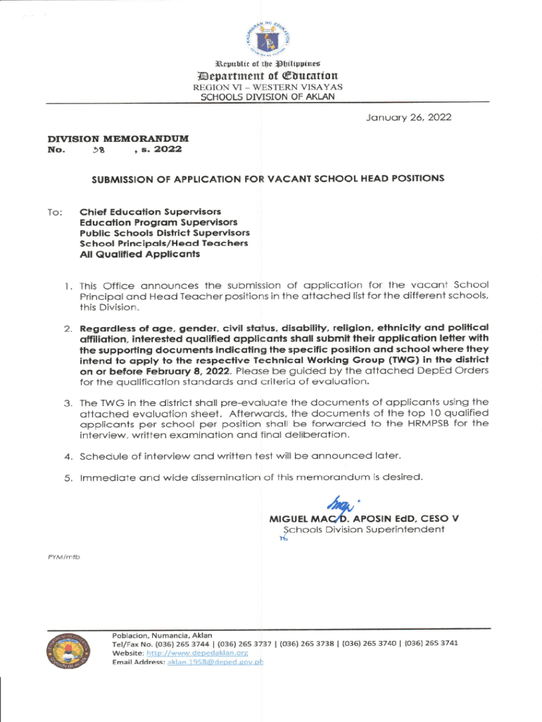 Faculty and staff members of Aklan State University are required to file the university rankings.