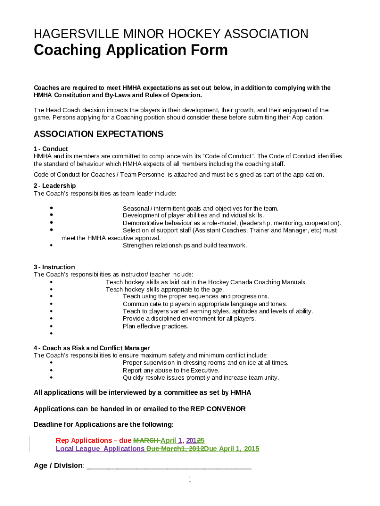 HMHA Coaches Application (Hagersville Minor Hockey) template instructions
