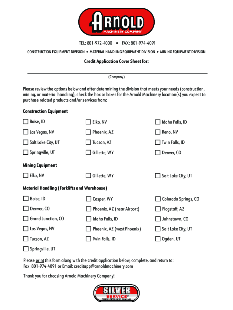 Get the free FAX: 801-974-4091 Credit Application Cover Sheet for