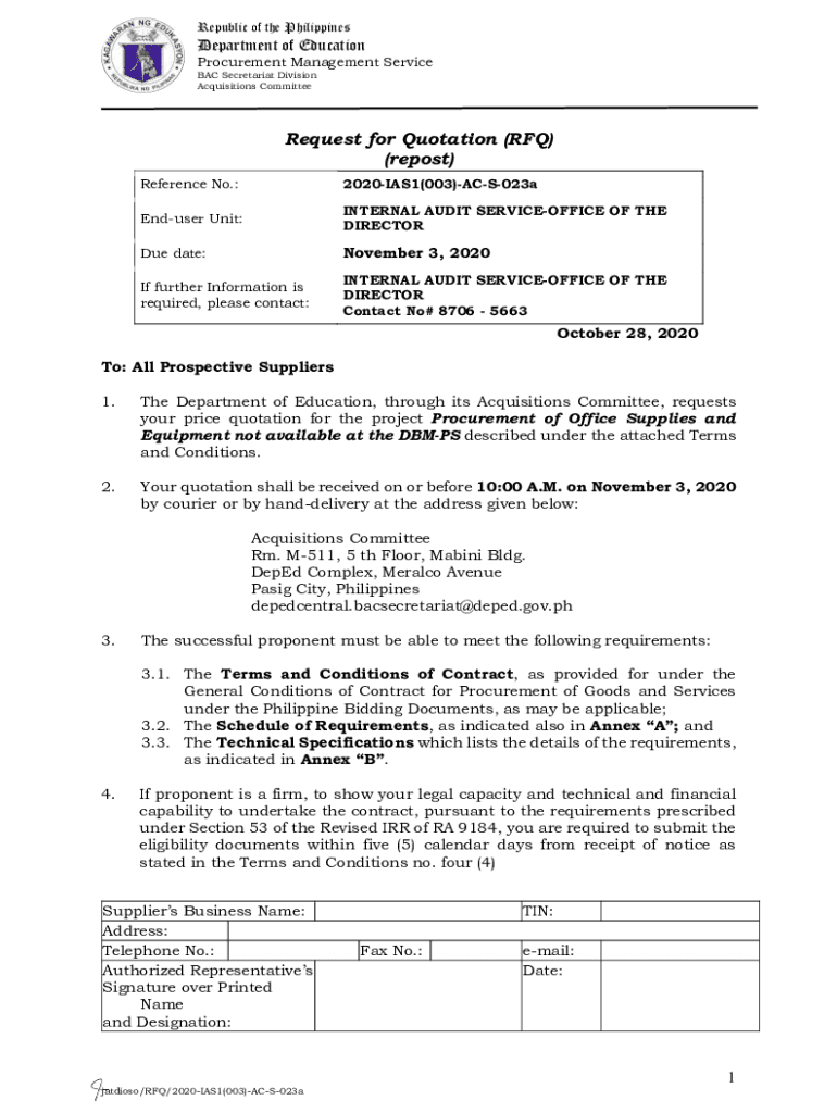 Acquisitions CommitteeRequest for Quotation (RFQ)