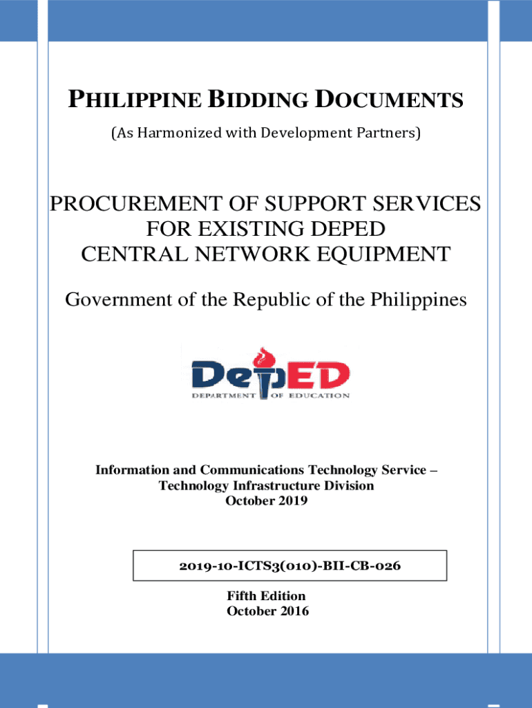 PHILIPPINE BIDDING DOCUMENTS (As Harmonized with Development Partners)PROCUREMENT OF SUPPORT SERVICES FOR EXISTING DEPEND CENTRAL NETWORK EQUIPMENT Government of the Republic of the PhilippinesInformation