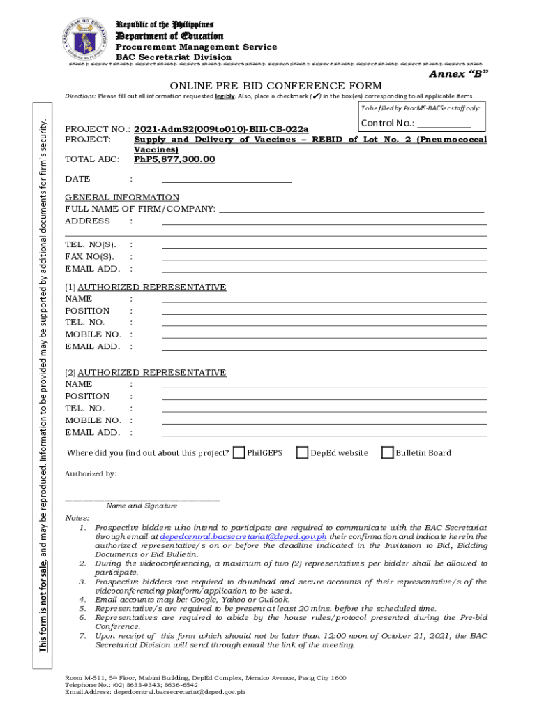 Get the free Supply and Delivery of Vaccines REBID of Lot No