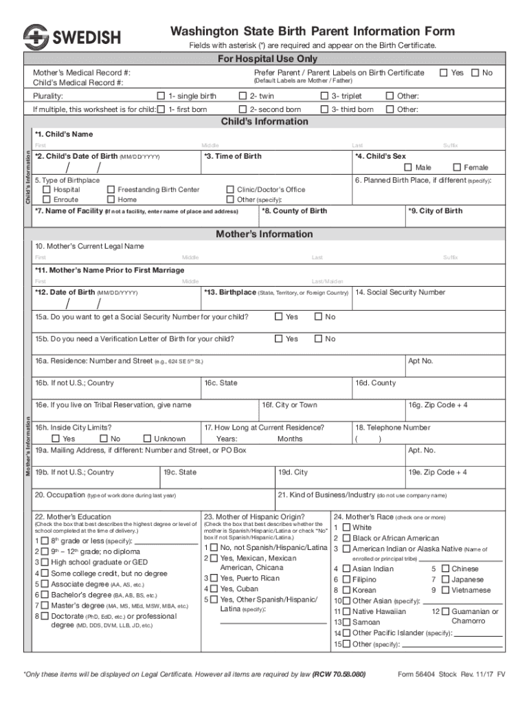 Washington State Birth Parent Information Form