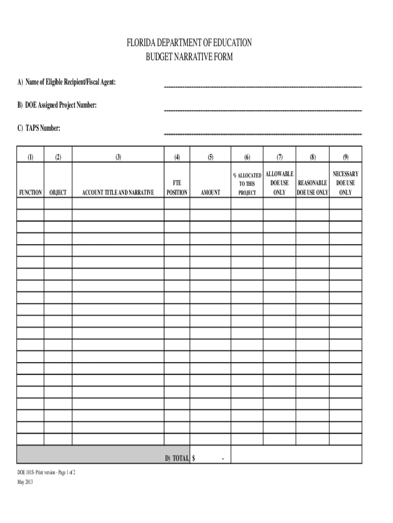 Get the free Budget Narrative Form (DOE101S) - info fldoe