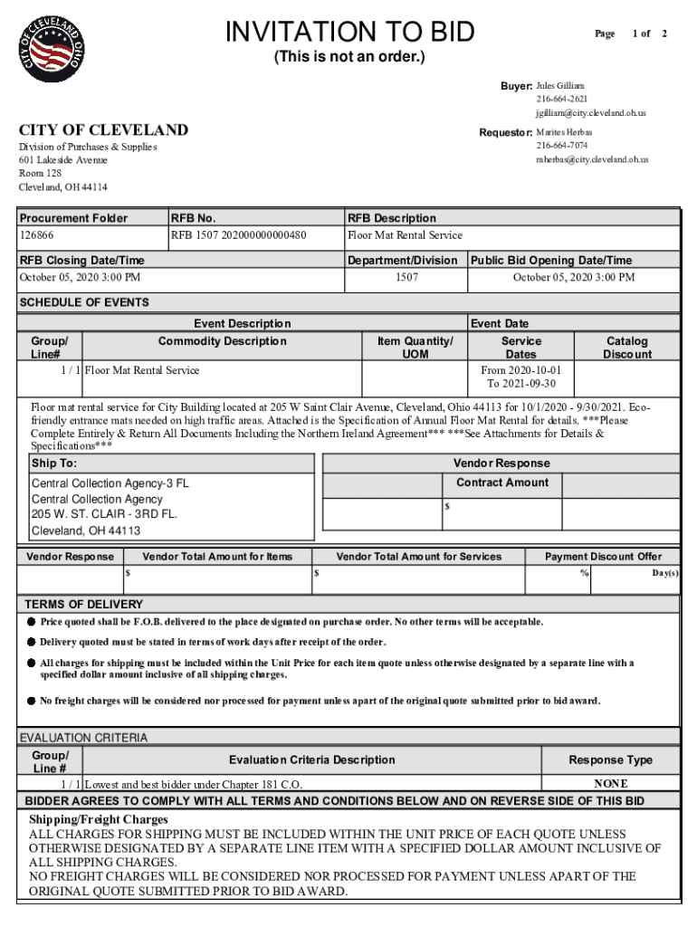 jgilliam@city.cleveland.oh.usCITY OF CLEVELANDRequestor: Marines Herbs
