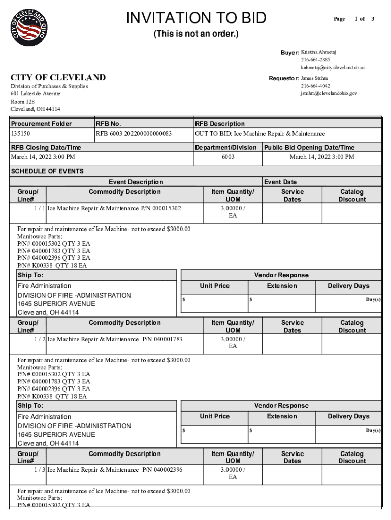 Get the free OUT TO BID: Ice Machine Repair & Maintenance