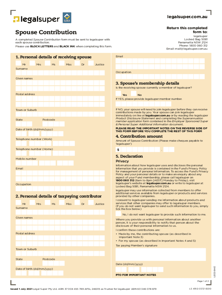 Submit the completed spouse contributions form to the appropriate department for processing.