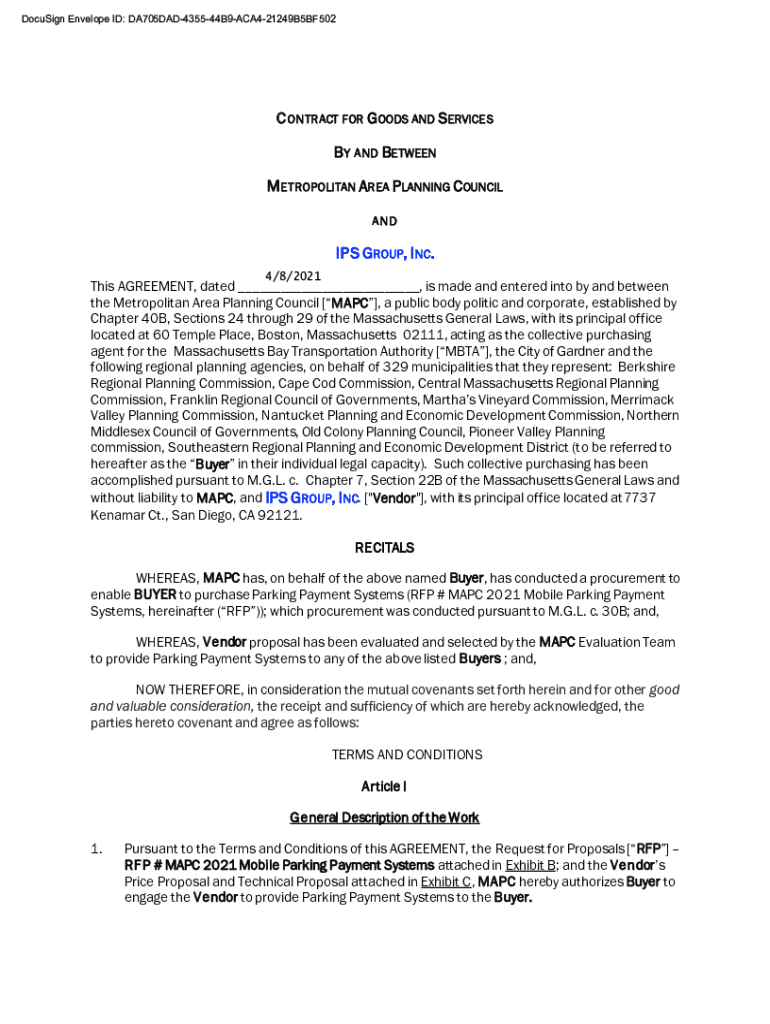 DocuSign Envelope ID: DA705DAD435544B9ACA421249B5BF502C ON TRACT FOR GOODS AND SERVICES B Y AND BETWEEN M METROPOLITAN AREA PLANNING COUNCIL AN DIPS GROUP, I NC. 4/8/2021This AGREEMENT, dated ___,