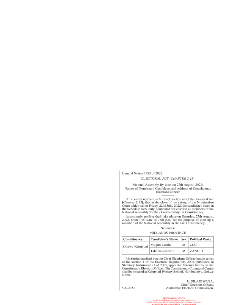 Get the free Addresses of Constituency Elections Officers - Harare