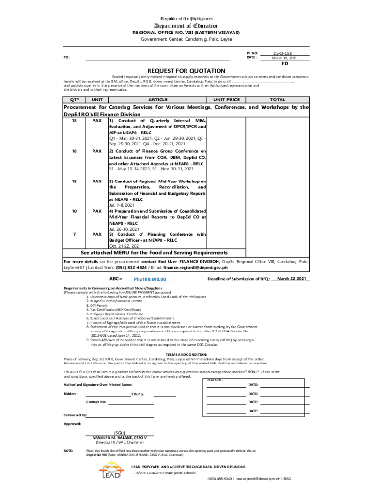 All employees and departments under the Department of Education Regional Office VIII are required to file their financial reports.