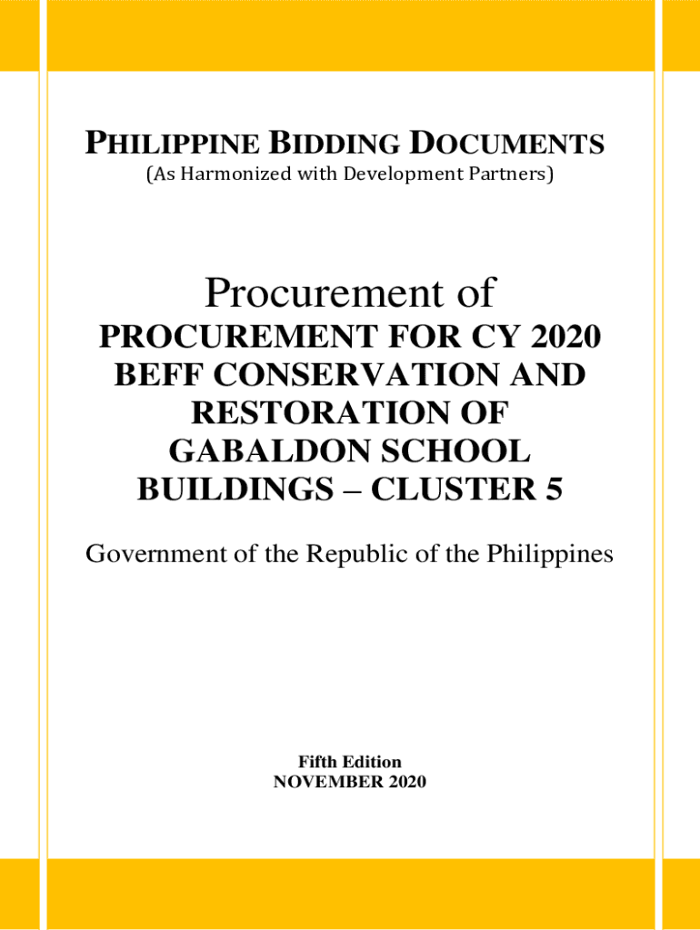 PHILIPPINE BIDDING DOCUMENTS (As Harmonized with Development Partners)Procurement of PROCUREMENT FOR CY 2020 JEFF CONSERVATION AND RESTORATION OF ABANDON SCHOOL BUILDINGS CLUSTER 5 Government of the