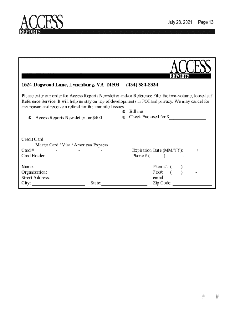 Volume 47, Number 15 July 28, 2021A Journal of News & Developments, Opinion & Analysis In this Issue Response From State Department Does Not Moot Litigation Against USCIS .................. 1 Views