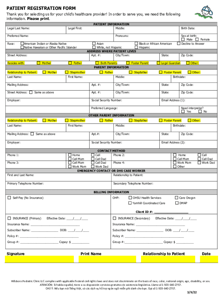 Welcome to your Medical Home! Mainstream 445 E Main St Hillsboro, OR 97123 Mon through Thur: 8am 8pm Fri: 8am 5pm Sat: 9am 12pmEnclosed is our New Patient Packet. The patients Legal Parent or Guardian