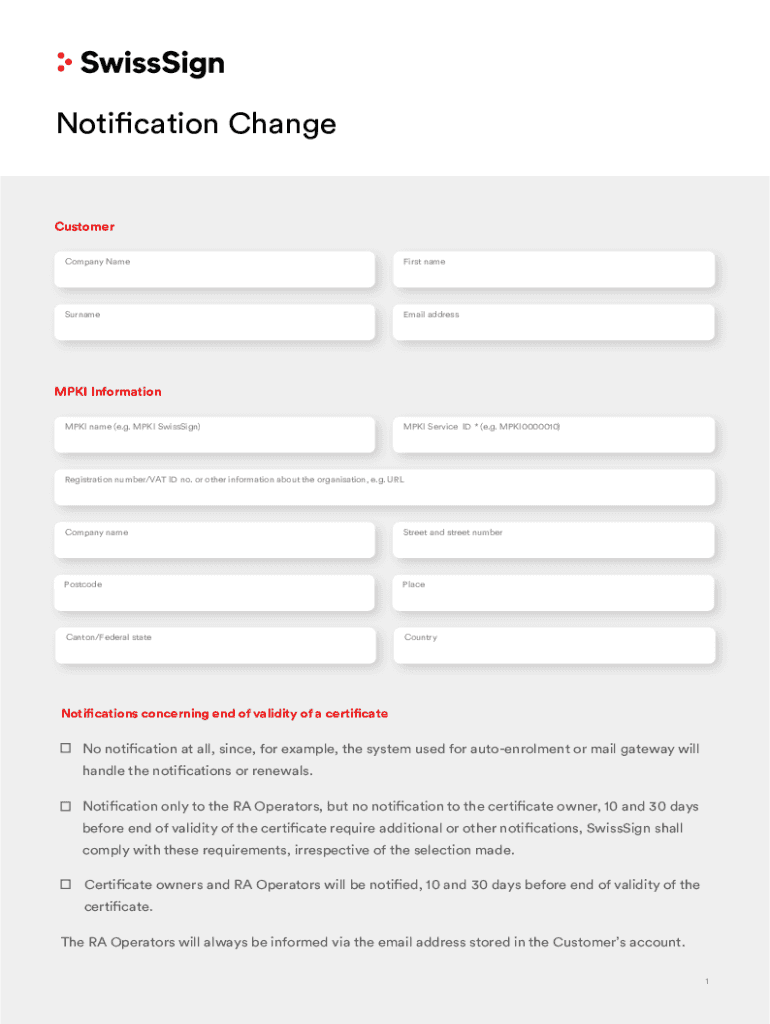 PKI name (e.g. PKI Swissair)PKI Service ID * (e.g. MPKI0000010)Registration number/VAT ID no. or other information