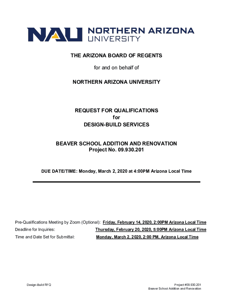 NORTHERN ARIZONA UNIVERSITYREQUEST FOR QUALIFICATIONS