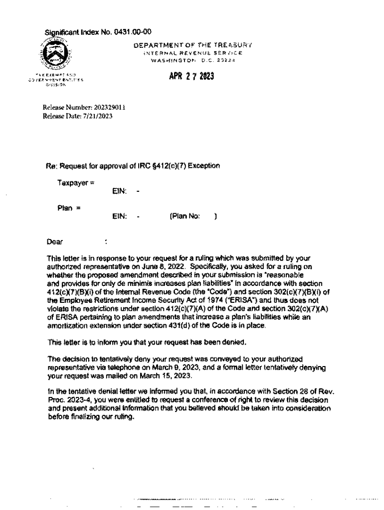N t Index No. 0431.0000! ;\”\”,.,DEPARTMENT OF THE TRE\'ISR I;;INTERNAL REVENUE SER /1(. E\”!\', ,,,. J \'! , T;.l(, 'M;;. Washington\'l0. C. 2022APR 2 7 2023li :J, ;:;::r;t ,,,\”..._, 1:r.1\'\'