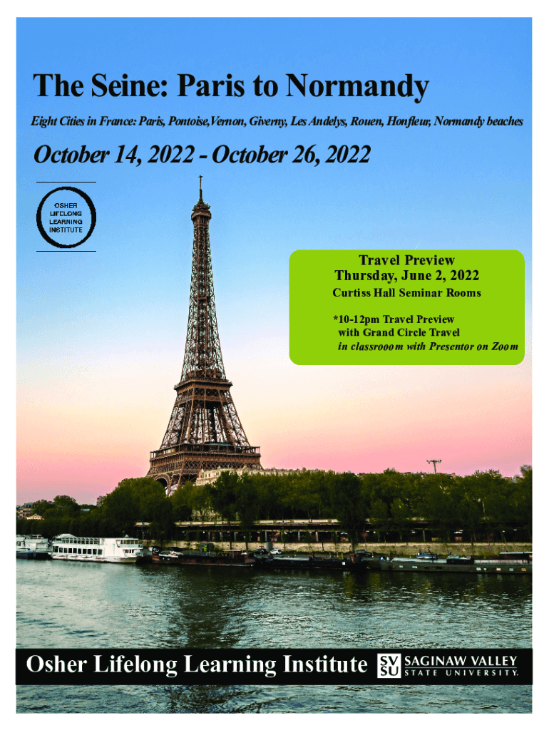 The Seine: Paris to Normandy Eight Cities in France: Paris, Tortoise, Vernon, Given, Les Angeles, Rouen, Confer, Normandy beaches October 14, 2022, October 26, 2022Travel Preview Thursday, June 2,