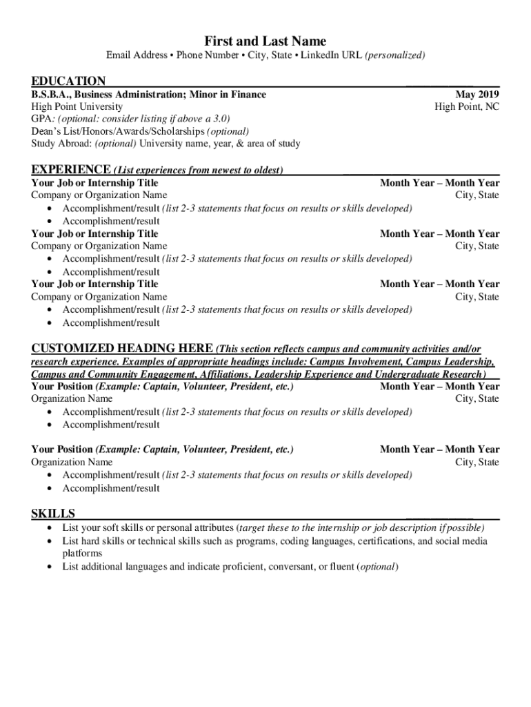 Email Address Phone Number City, State LinkedIn URL (personalized)EDUCATION___B. S.B.A., Business Administration; Minor in Finance