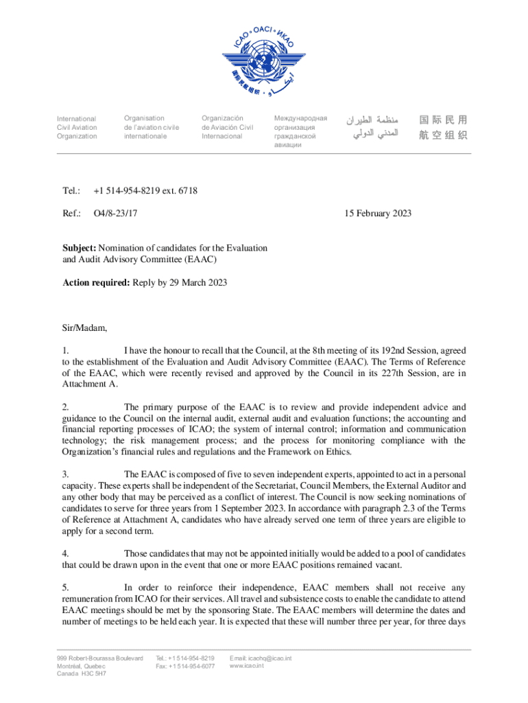 Get the free Nomination of candidates for the Evaluation and Audit