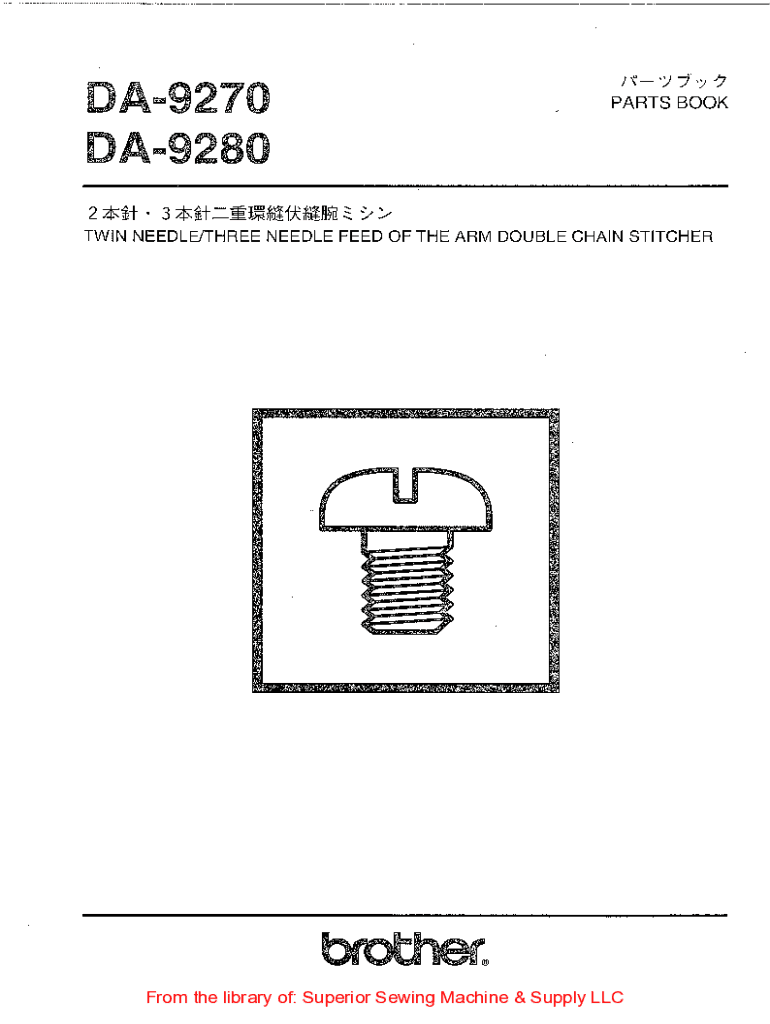 J 11111111\'\'.7\' :; ?PARTS BOOK2×3* TWIN NEEDLE!THREE NEEDLE FEED OF THE ARM DOUBLE CHAIN STITCHERFrom the library of: Superior Sewing Machine & Supply LLC1. /Light materials2. 9J /Light medium