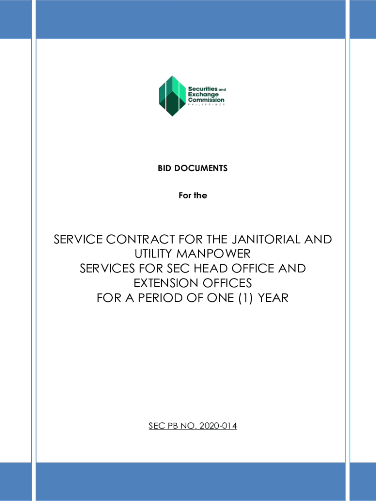 BID DOCUMENTS For preservice CONTRACT FOR THE JANITORIAL AND UTILITY MANPOWER SERVICES FOR SEC HEAD OFFICE AND EXTENSION OFFICES FOR A PERIOD OF ONE (1) YEAR SEC PB NO. 20200141TABLE OF CONTENTS Section