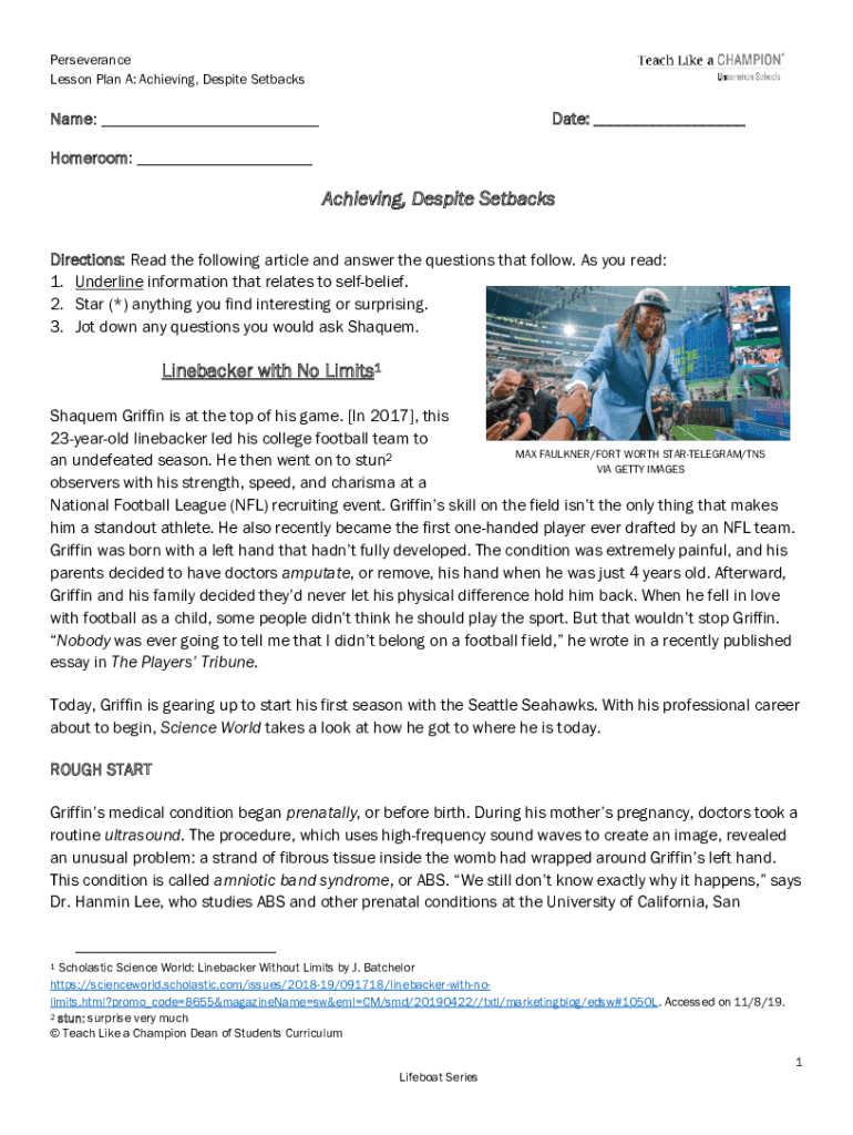 Get the free Note to Teacher: This lesson is about perseverancei.e., the ...
