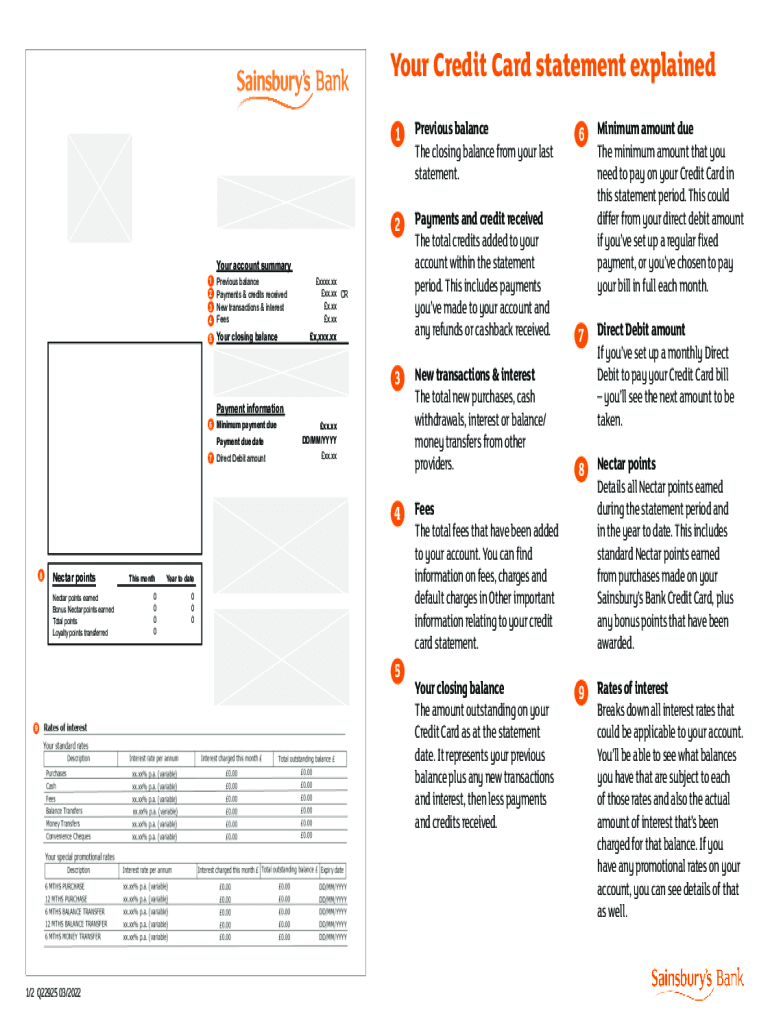 Your Credit Card statement explained Name Address line 1 Address line 2 Address line 3 City Postcode1Previous balance The closing balance from your last statement.2 Your account summary 1 Previous