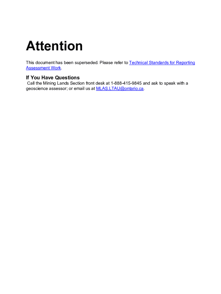 Attention This document has been superseded. Please refer to Technical Standards for Reporting Assessment Work. If You Have QuestionsCall the Mining Lands Section front desk at 18884159845 and ask
