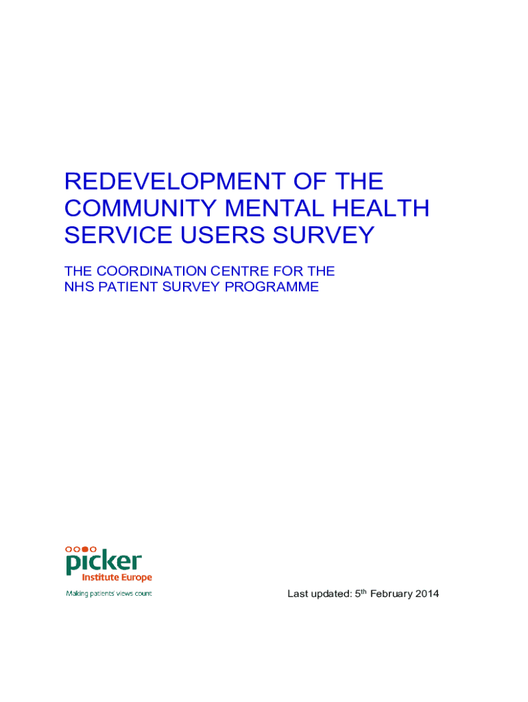 REDEVELOPMENT OF THE COMMUNITY MENTAL HEALTH SERVICE USERS SURVEY THE COORDINATION Center FOR THE NHS PATIENT SURVEY Programmers updated: 5th February 2014Contacts National Patient Survey Coordination