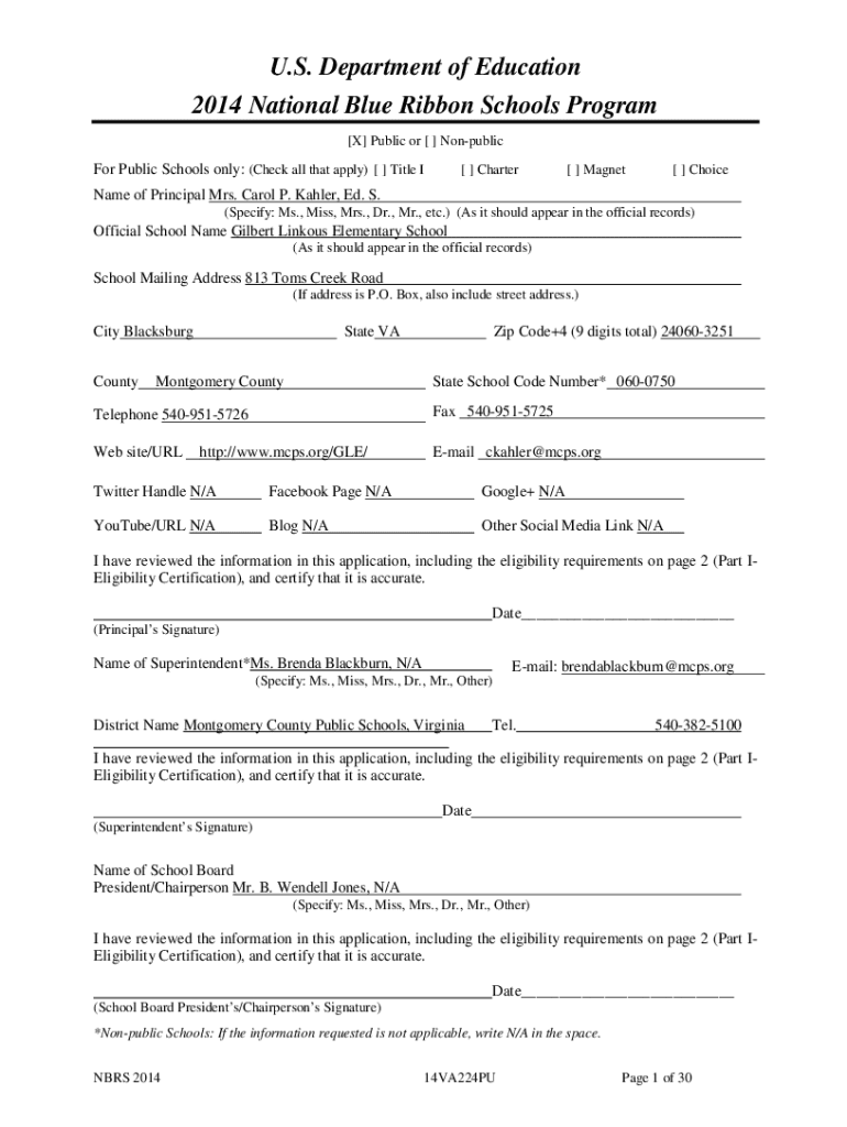 2014 National Blue Ribbon Schools Program