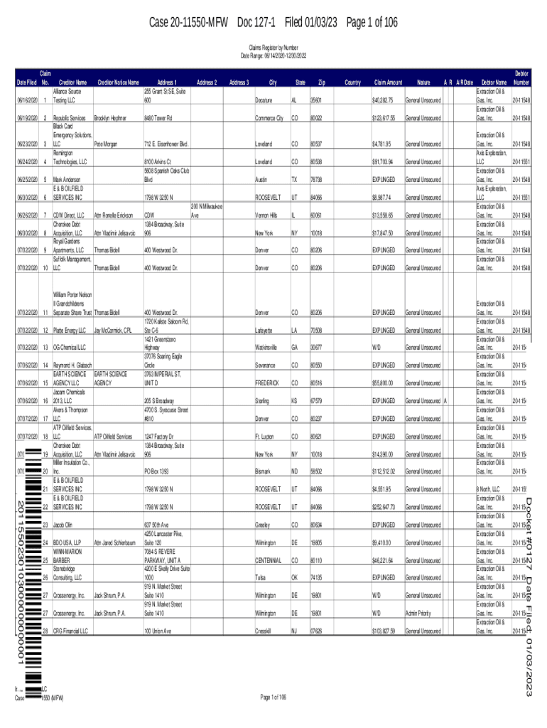 Get the free Extraction Oil and Gas, Inc., et al.