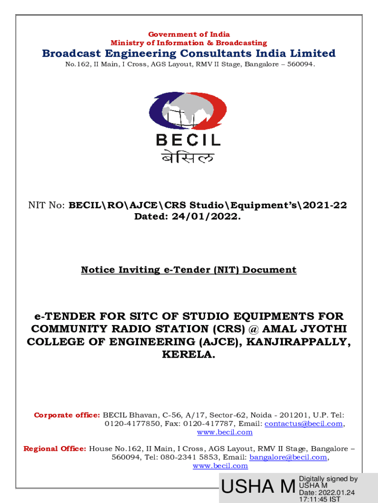 Any organization or individual looking to procure studio equipment through BECIL for the year 2021-22 needs NIT no becilroajcecrs studioequipments2021-22.