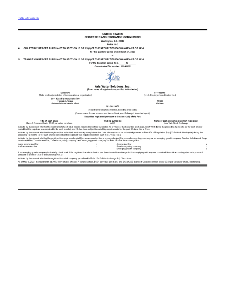 Get the free Aris Water Solutions,Inc
