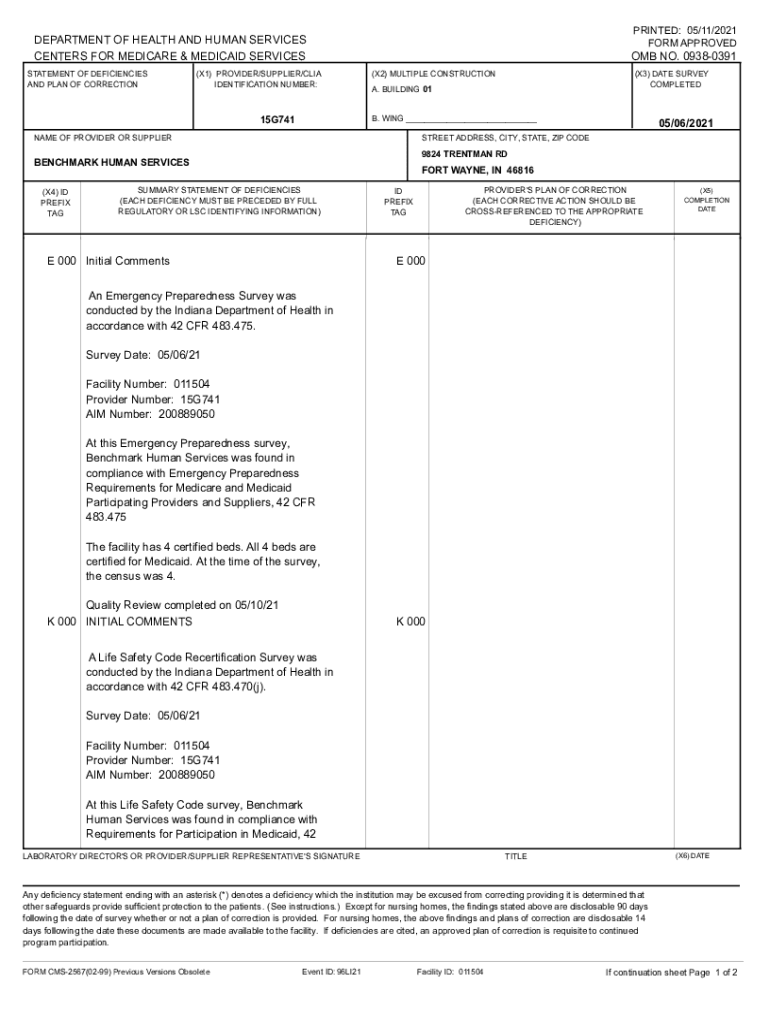 PRINTED: 05/11/2021 FORM APPROVEDDEPARTMENT OF HEALTH AND HUMAN SERVICES CENTERS FOR MEDICARE & MEDICAID SERVICES STATEMENT OF DEFICIENCIES AND PLAN OF CORRECTION(X1) PROVIDER/SUPPLIER/CIA IDENTIFICATION