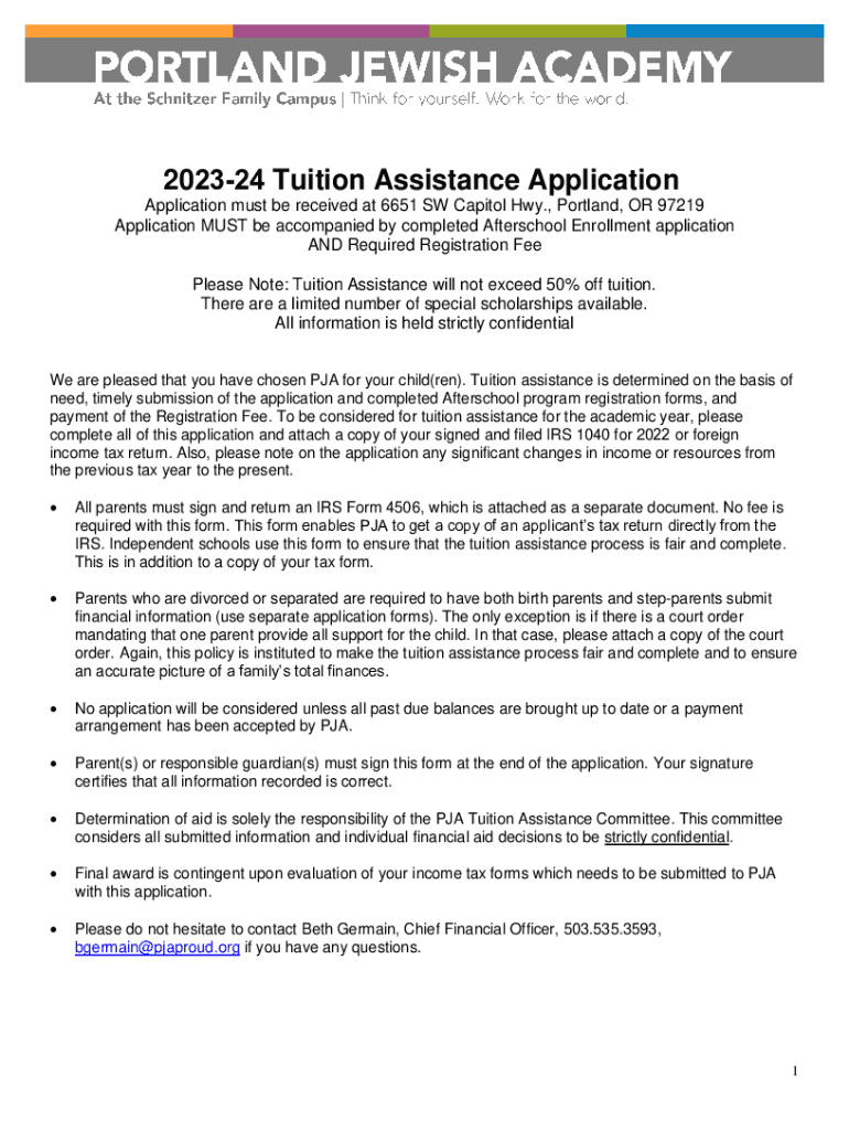 202324 Tuition Assistance Application must be received at 6651 SW Capitol Hwy., Portland, OR 97219 Application MUST be accompanied by completed After school Enrollment application AND Required Registration