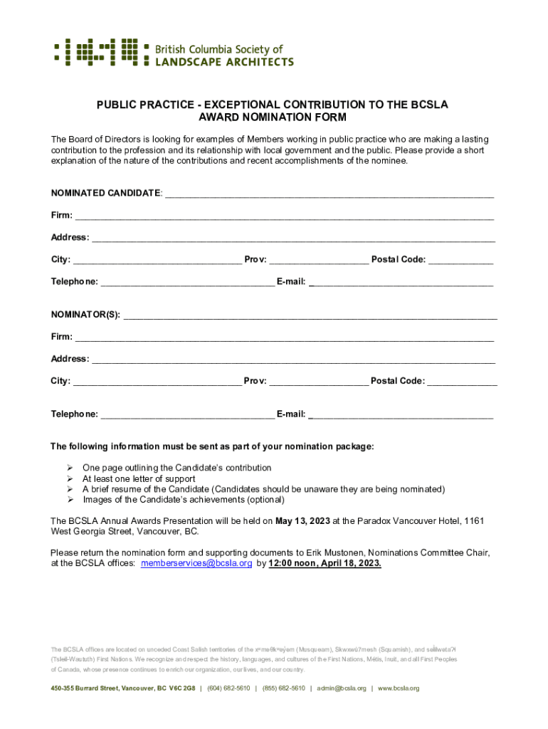PUBLIC PRACTICE EXCEPTIONAL CONTRIBUTION TO THE BC SLA