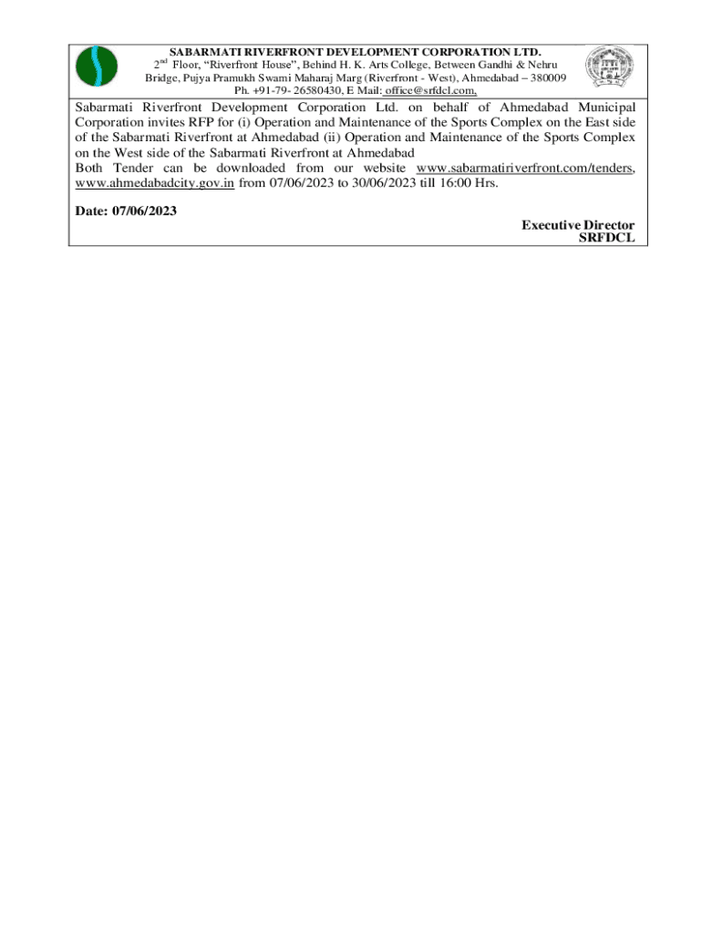 Get the free Sabarmati River Front Development Corporation Ltd in C G ...